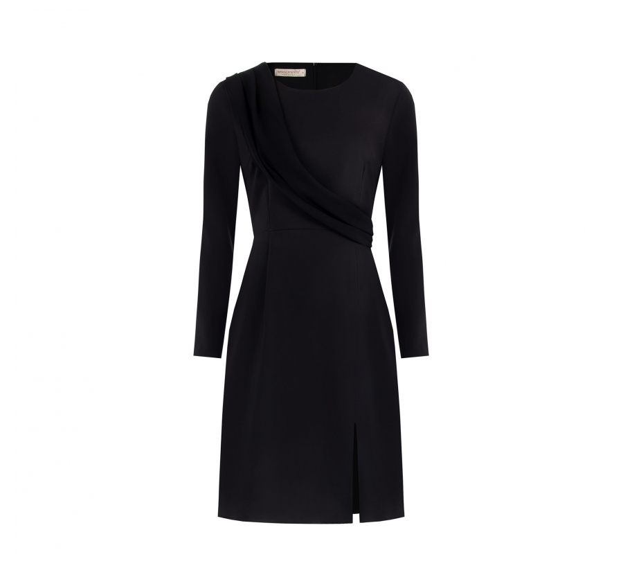 Elegáns fekete ruha Rinascimento-tól, testhez simuló szabással és klasszikus vonalakkal. Ideális választás estélyekre, üzleti eseményekre vagy elegáns megjelenéshez – fekete alapszín, időtálló stílus.