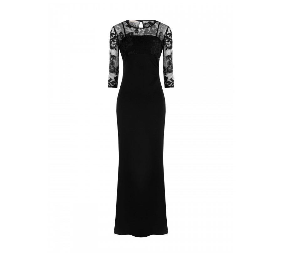 Elegáns fekete ruha Rinascimento-tól, karcsúsított szabással és letisztult vonalakkal. Ideális választás alkalmakra és estélyekre, amikor az időtálló fekete stílus a fő szempont — fekete alap, kifinomult megjelenés.