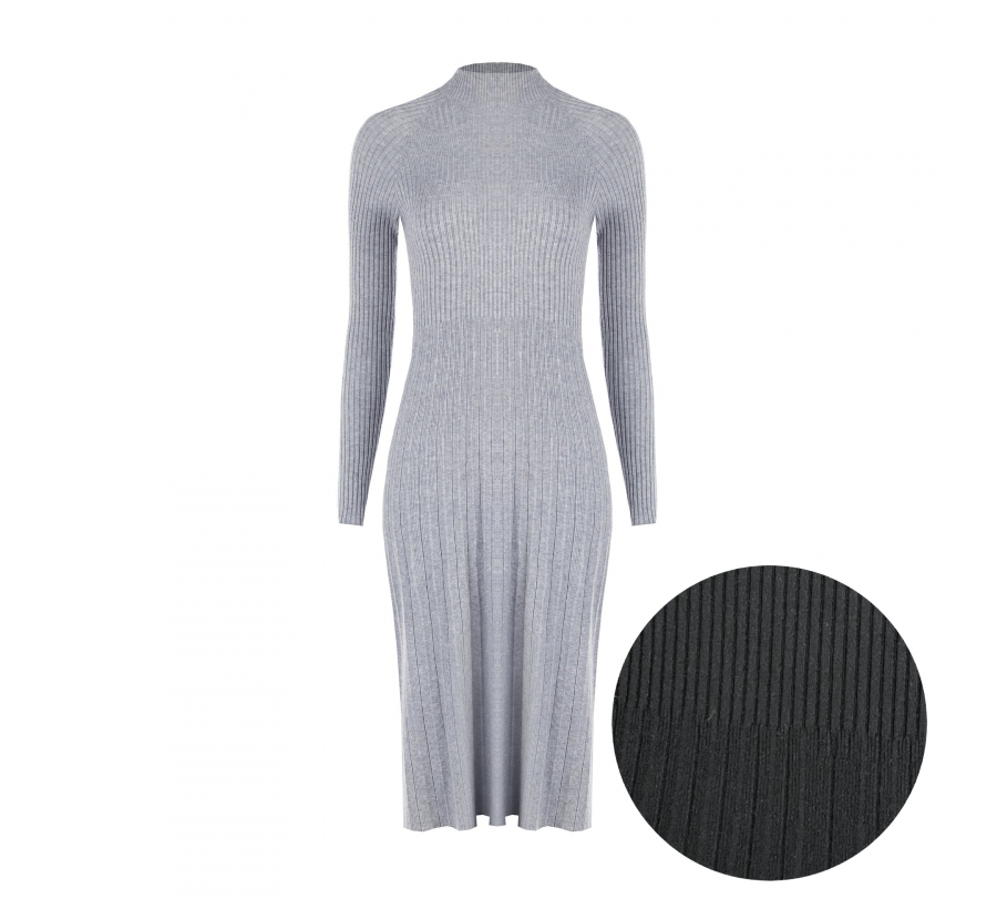Elegáns fekete női ruha Rinascimento-tól: bordázott kötött anyag, felső részen testhez simuló vonalak, alul bővülő szabás – kényelmes és nőies állásra vagy estére. Kombináld magassarkúval és letisztult kiegészítőkkel a tökéletes megjelenésért.