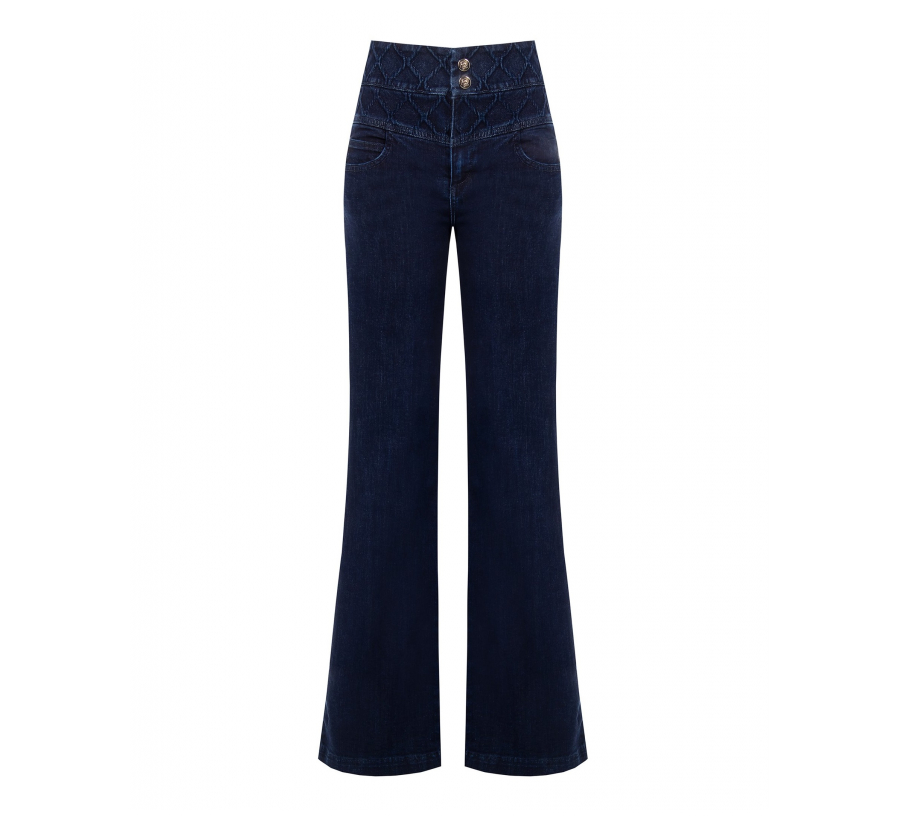 Rinascimento kék farmer nadrág magasított derékkal és bővülő szárhosszal, derekán finom tűzésekkel, hátul zsebekkel — olasz stílus, tartós kivitel. Ideális választás városi szettekhez, hétköznapi és elegáns kombinációkhoz is.