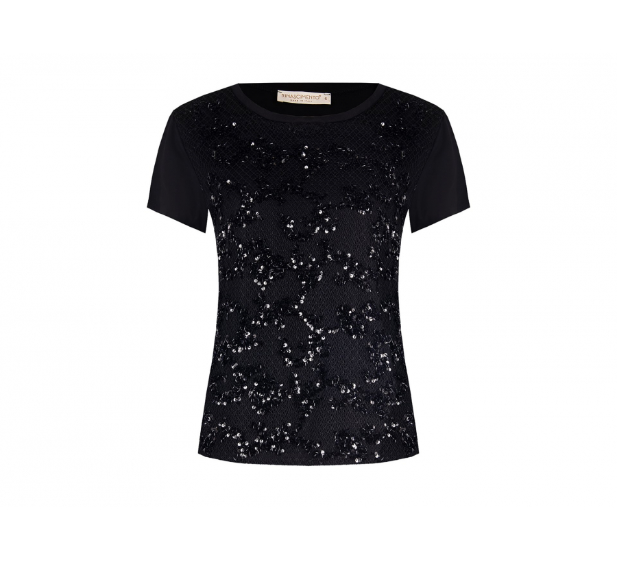 Elegáns fekete női felső Rinascimento Nero kollekcióból, karcsúsított szabással és finom anyagból. Ideális választás alkalmi és hétköznapi megjelenéshez is — kombnálhatod szoknyával, nadrággal vagy zakóval. Made in Italy.