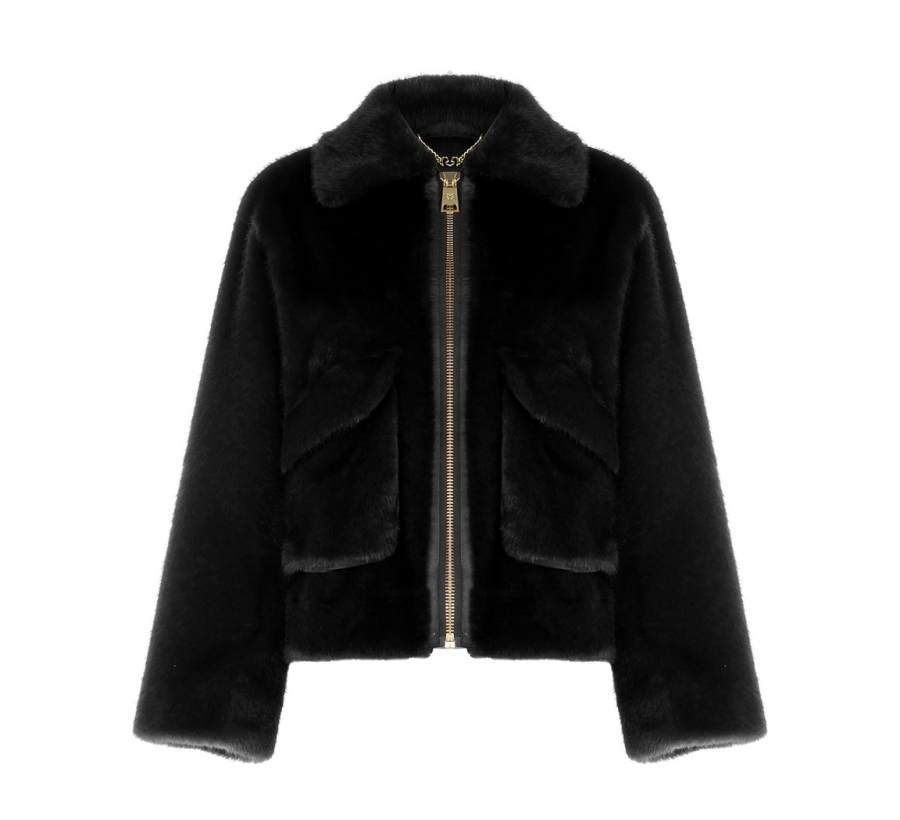 Elegáns fekete kabát Rinascimento-tól, elöl műszőrme szegéllyel, zipzárral és nagy zsebekkel. Anyagösszetétel: 100 % poliészter. Made in Italy — ideális választás az őszi-téli átmeneti időszakra, ha stílusos, praktikus és nőies megjelenést szeretnél.