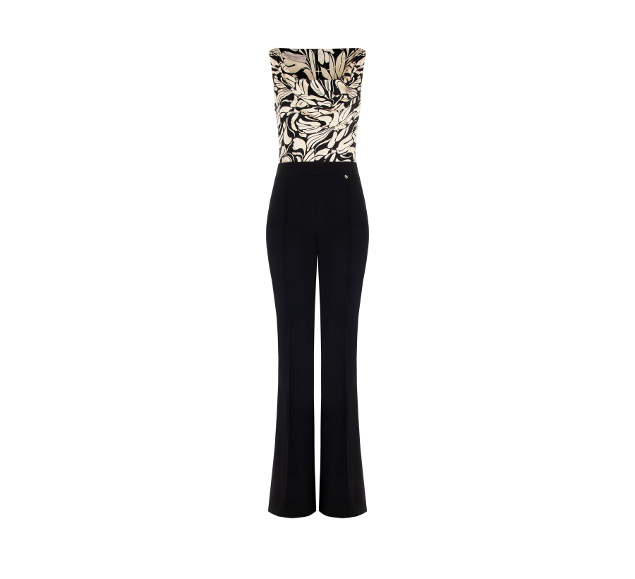 Elegáns fekete overál Rinascimento Varia kollekcióból, modern szabással és letisztult vonalakkal. Hátul zipzáras záródással, vállpántos kialakítással — tökéletes alternatíva ruha helyett különleges alkalmakra és esti programokra. Made in Italy minőség.