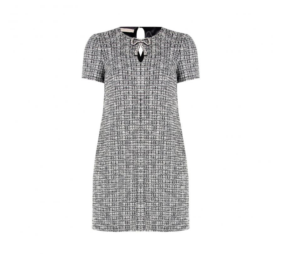 Klasszikus fekete Vario ruha Rinascimento-tól, karcsúsított fazonnal és időtálló stílussal. Tökéletes választás estélyekre, alkalmakra, amikor a letisztult elegancia a cél — fekete alapszínnel, elől masni, kristályokkal, kifinomult megjelenéssel.