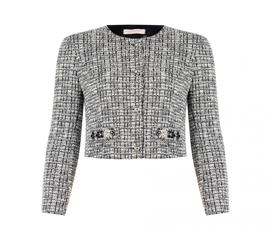 Elegáns fekete Vario zakó Rinascimento-tól, karcsúsított szabással és letisztult vonalakkal. Tökéletes választás irodába, üzleti eseményekre vagy elegáns hétköznapokra — kombináld nadrággal vagy ruhával stílusos megjelenésért.