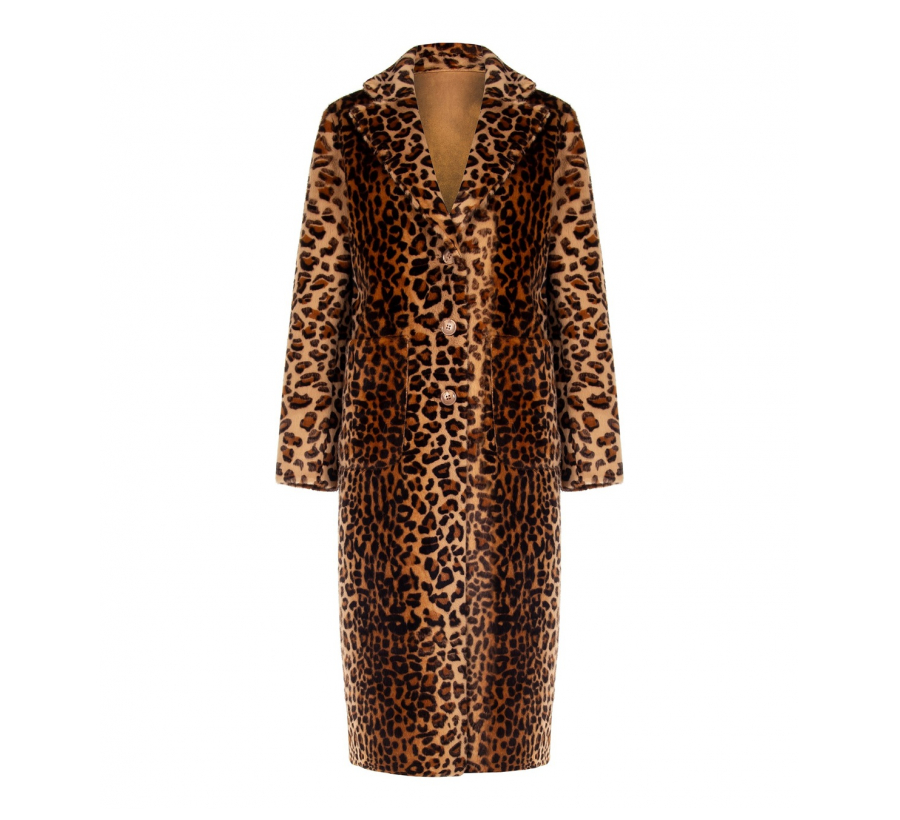 Különleges sötét csokoládébarna kabát Rinascimento-tól: kétszínű fazon—egyik oldala ocelot mintás művelúr, másik camello árnyalatú – oversize szabás, nagy zsebekkel, gombos rögzítéssel. 100 % poliészter, olasz kivitel. Stílusos választás az átmeneti napokra.